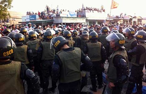 Lực lượng CSCĐ tham gia vãn hồi trật tự. Ảnh: PNX