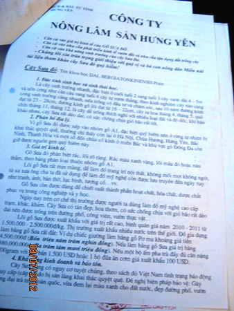 Cũng theo một nguồn tin đáng tin cậy, cách đây chừng hơn một tháng, Công ty TNHH TM&DV Nông lâm sản Hưng Yên cũng đã giới thiệu và bán hàng ngàn cây giống sưa đỏ cho bà con các xã miền núi thuộc huyện Vũ Quang, tỉnh Hà Tĩnh.