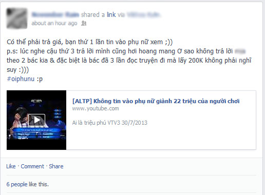 Khẳng định "Trong những giờ phút quyết định, tôi ít niềm tin vào phụ nữ hơn", người chơi "Ai là triệu phú" đã bỏ qua tư vấn của hai nữ khán giả để giành 22 triệu đồng. Anh cũng khiến cư dân mạng thích thú trước phát ngôn "bất hủ" này.