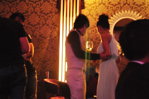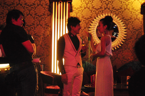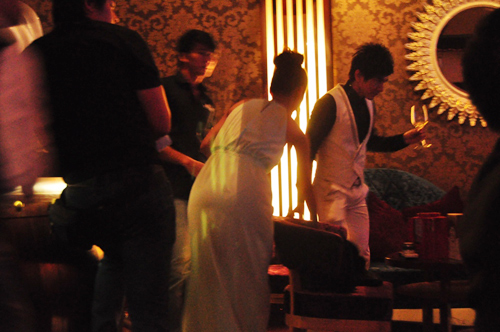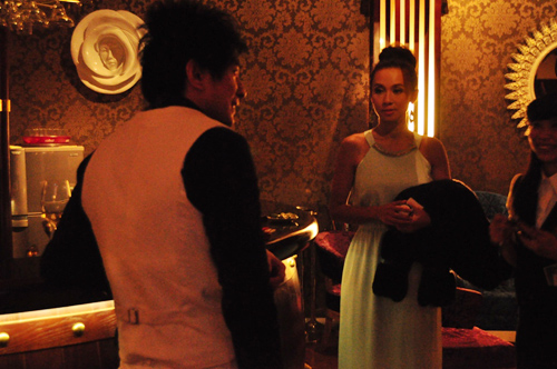 Đan Trường cẩn thận chăm sóc cho bạn gái ở phía hậu trường của quán bar.