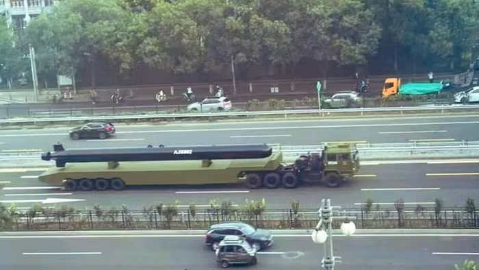 Hình ảnh lan truyền từ các buổi diễn tập duyệt binh trên mạng xã hội Trung Quốc cho thấy tên lửa và phương tiện ngầm không người lái dài khoảng 18 m. Ảnh: MXH Trung Quốc.
