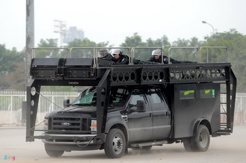 Điển hình là chiếc Ford F550 Super Duty - dòng xe bán tải hạng nặng do Mỹ sản xuất. Khi về Việt Nam, những chiếc xe được trang bị thêm nhiều tính năng vũ trang và chống bạo động chuyên dụng phù hợp.
