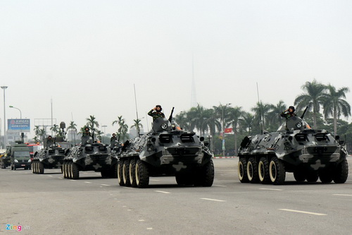 Dàn xe bộ binh bánh lốp (BTR - 60PB) của Bộ Tư lệnh Thủ đô. Hỏa lực mạnh cộng với tính cơ động cao nên xe có thể chở bộ đội tác chiến trên nhiều địa hình và làm nhiệm vụ chống bạo loạn.