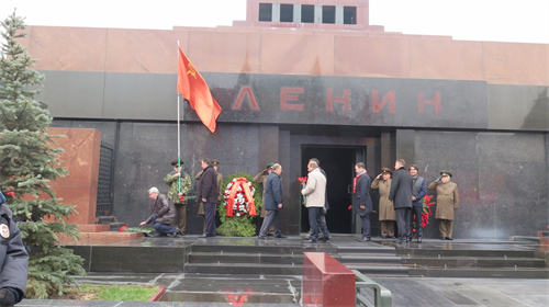 Những vòng hoa với dòng chữ trên dải lụa đỏ, những biểu ngữ cùng nhiều cờ đỏ, cẩm chướng đỏ... của những người Cộng sản đặt trước Lăng Lênin như một lời khẳng định tình đoàn kết, sự trường tồn và vững vàng của ý chí, của tinh thần Tháng Mười vĩ đại trong cuộc sống hôm nay.