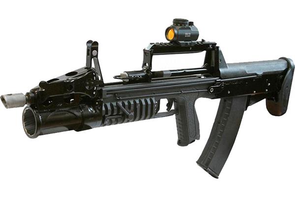 Ngoài ra, súng còn được trang bị một khẩu súng phóng lựu gắn phía dưới nòng súng. Khẩu súng phóng lựu này sư dụng cỡ đạn 40mm, có nhiều loại đạn tương thích bao gồm đạn nổ mạnh, đạn nổ mảnh,... Nguồn ảnh: RIA.