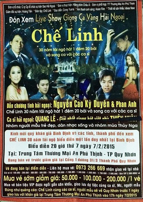 Quảng cáo cho liveshow Chế Linh tối 7/2.