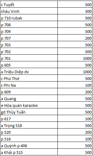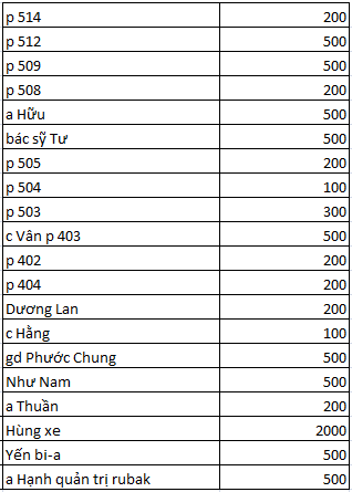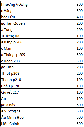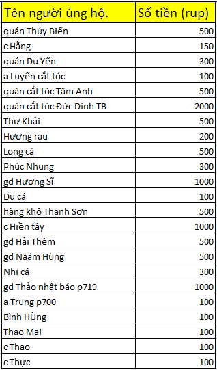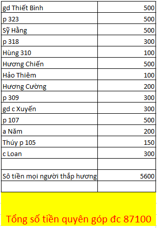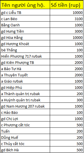 Danh sách bà con quyên góp dành cho anh Vũ Khắc Thiệm (Phần 2)