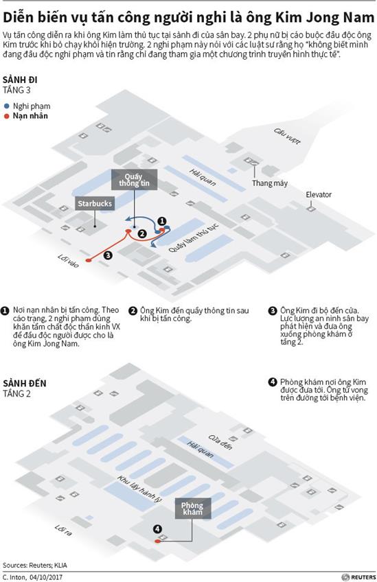 Diễn biến vụ tấn công người nghi là ông Kim Jong Nam tại sân bay. Đồ họa: Reuters.