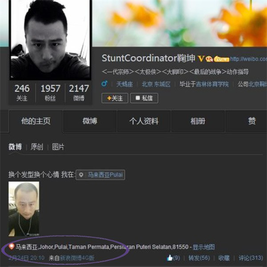 Theo Sina, trước đó, vào ngày 24/2, đạo diễn Cúc Khôn đưa lên trạng mạng xã hội cá nhân của mình một tấm ảnh với ghi chú: "Thay kiểu tóc mới, thay đổi tâm tình" và hiển thị địa chỉ là Malaysia.