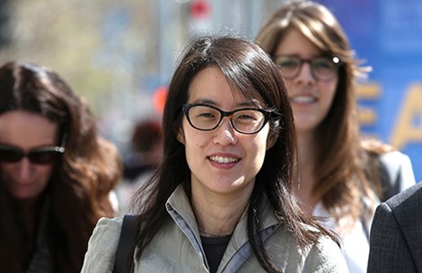 Ellen Pao (giữa) rời tòa án hồi tháng 3 năm nay. Ảnh: GETTY IMAGES