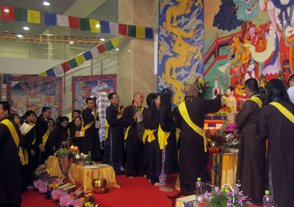 Hình ảnh trong Đại lễ mừng Phật đản sinh, Phật lịch 2557 được tổ chức tại đại sảnh của Trung tâm Văn hóa Thương mại và Khách sạn Hà Nội - Moskva ngày 18-5-2013: