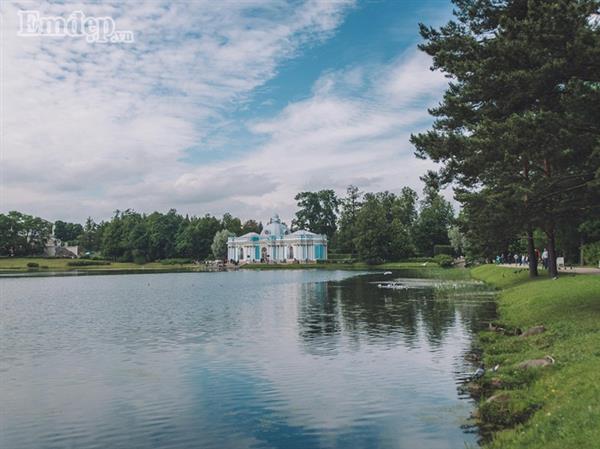 Mặt hồ tĩnh lặng như gương trong quần thể khu vực cung điện Mùa Đông.