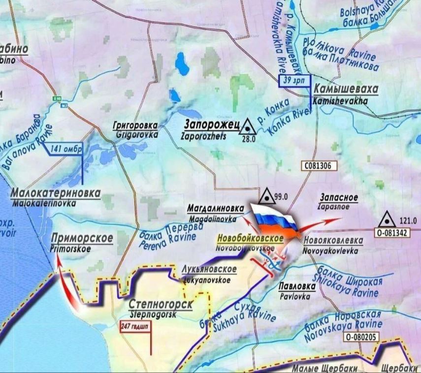 Việc giành quyền kiểm soát Novoboikivske của RFAF, không chỉ đơn thuần là chiếm giữ một ngôi làng, mà nó mang ý nghĩa chiến thuật sâu sắc. Đồng thời, các đơn vị xung kích của Nga đang tiến về Kamishevka và cố gắng kiểm soát Quốc lộ 08. Quốc lộ này không phải là tuyến đường vận tải thông thường; nó kết nối với quốc lộ M18, sân bay và trực tiếp đến thủ phủ Zaporozhye.