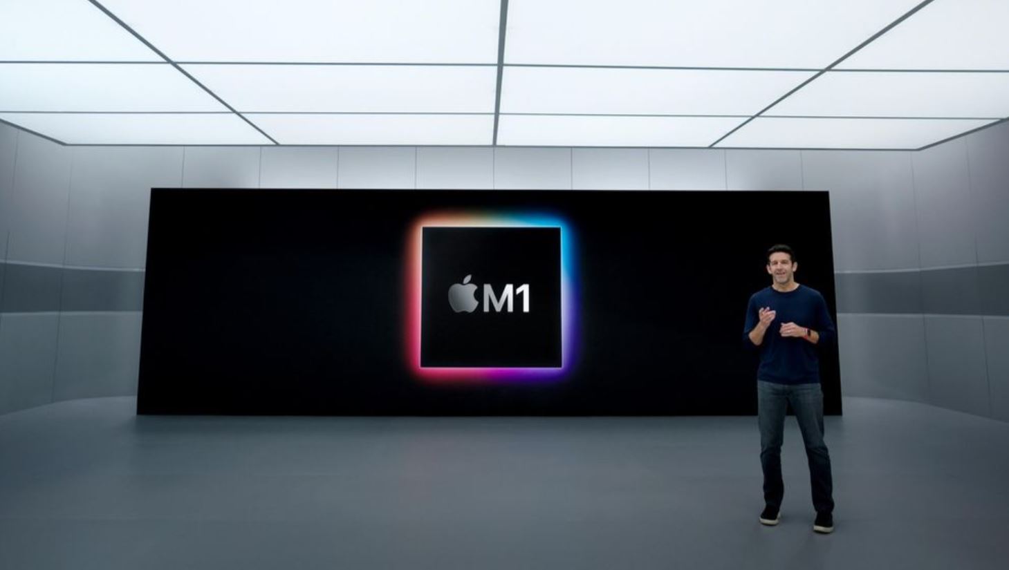 John Ternus giới thiệu chip Apple M1 năm 2020. Ảnh: Apple.