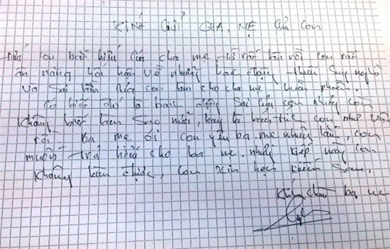 Bức thư tuyệt mệnh Phúc gởi cho cha mẹ.