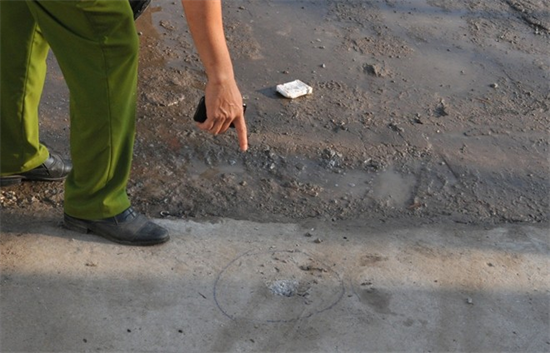 Viên đạn làm thủng nền bê tông sân nhà nghỉ.