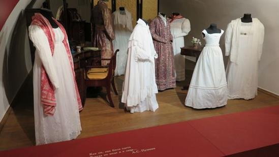 Một góc trưng bày trang phục quý tộc Nga thế kỷ 18-19 với một câu thơ của Pushkin