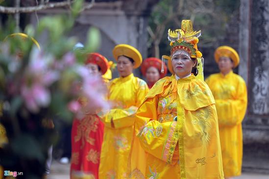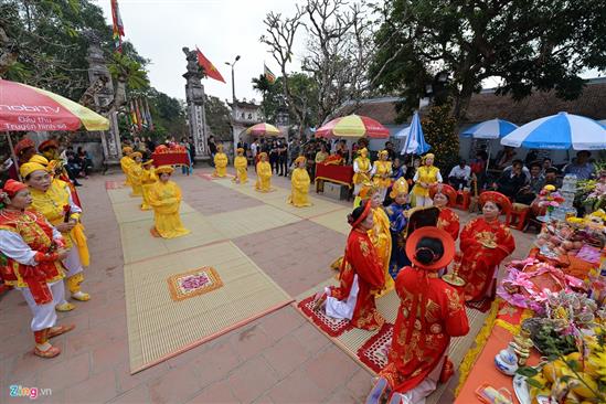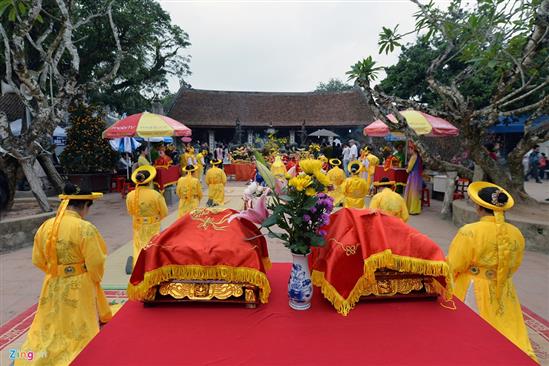 Chiều 4/2, đoàn tế lễ của phường Lộc Vượng, TP Nam Định, long trọng bái yết hàng giờ tại sân gian Thiên Trường.