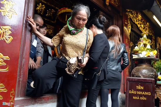 Nhiều người xếp hàng xin quẻ tại đền Cố Trạch.