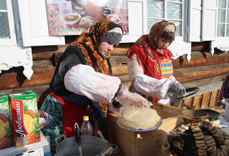 Thưởng thức những món ăn truyền thống do chính các cô gái Nga làm ra tại chỗ