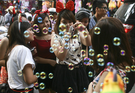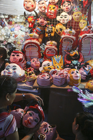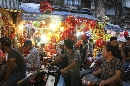 Ngày rằm của tháng 8 (âm lịch), mặt trăng được nhìn thấy đẹp nhất năm. Cũng từ ngày trăng tròn này, trẻ nhỏ có thêm một cái tết - Tết Trung thu. Trung tâm ngày tết này luôn tụ về các phố Hàng Mã, Hàng Lược trong phố cổ. Các bé được bố mẹ cho đi chơi chợ, sắm đồ chơi. Các “teen” thì thích thú với mặt nạ “tây” và cánh thiên thần, giả nai ngơ ngác làm dáng chụp ảnh giữa chợ.