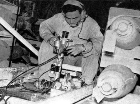 Trong ảnh, phi công ta đang ngắm mục tiêu qua máy ngắm lắp trong khoang hàng C-130 cải tiến, bên cạnh là các kiện bom Mk-82.