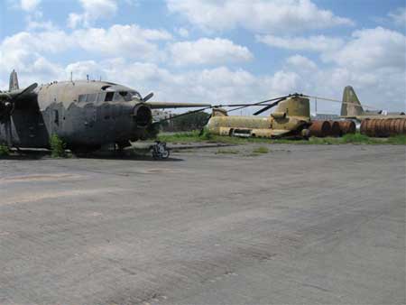 Cuối những năm 1980, tương tự UH-1, toàn bộ CH-47 đều không thể duy trì hoạt động do thiếu phụ tùng, linh kiện thay thế. Trong ảnh, một chiếc CH-47A loại biên chế nằm trong sân bay Tân Sơn Nhất, bên cạnh là máy bay vận tải C-119 trong tình trạng tương tự. Nguồn: Chinook-Helicopter