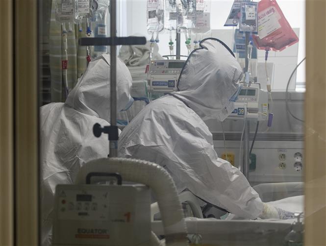Nhân viên y tế chăm sóc bệnh nhân mắc COVID-19 tại một bệnh viện ở Daegu, Hàn Quốc ngày 18/3/2020. Ảnh: THX/TTXVN