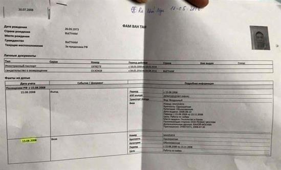 Thông báo của Cục xuất nhập cảnh nước Nga việc ông Tấn đã ra khỏi nước này. Ảnh: Đ.Tuỳ