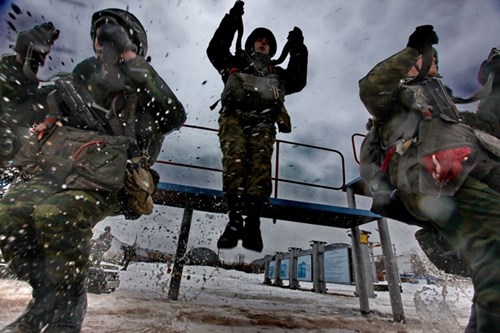 Lực lượng đổ bộ đường không nhảy dù thuộc đơn vị vệ binh dù 31 Nga trong một đợt tập trận.