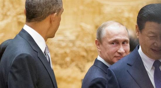 Tổng thống Mỹ Barack Obama (trái), Tổng thống Nga Vladimir Putin (giữa) và Chủ tịch Trung