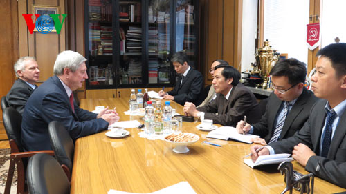 Đoàn cũng đã có buổi làm việc với ông Georgy Vlaksin - Phó Cục trưởng Cục Thông tin – báo chí Bộ Ngoại giao Nga và ông Boris Komosky - Tổng biên tập Báo Pravda./.