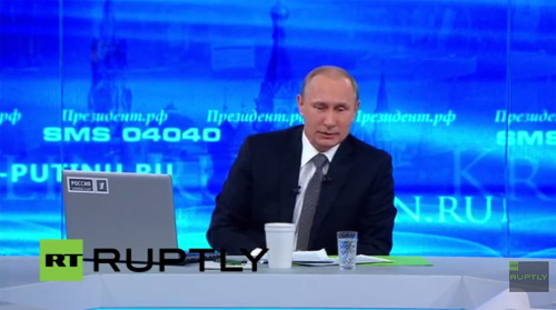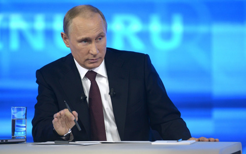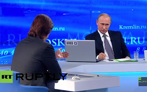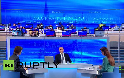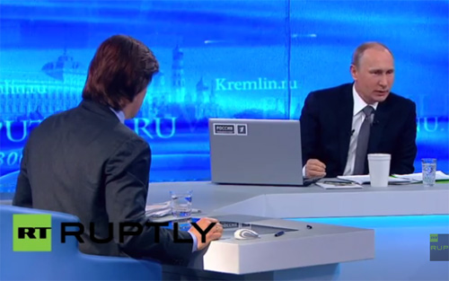 Mở đầu cuộc đối thoại, Tổng thống Putin đã điểm lại những nét chính về tình hình chính trị, kinh tế, xã hội tại Nga năm 2014.