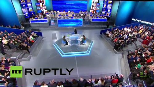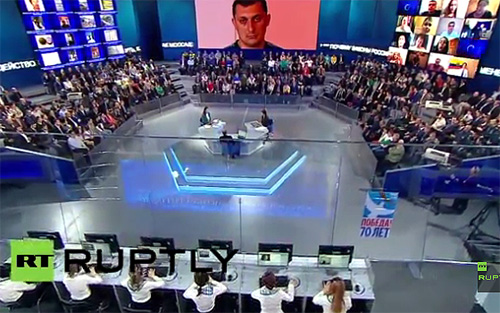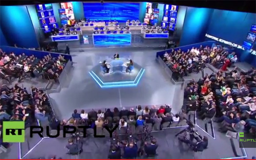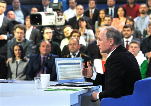 Đúng 12h trưa (giờ Moscow) ngày 16/4 (16h giờ Việt Nam), Tổng thống Nga Vladimir Putin bắt đầu cuộc đối thoại trực tiếp với người dân Nga. Đây là lần thứ 13 ông Putin thực hiện cuộc đối thoại trực tiếp như thế này, ở các cương vị khác nhau như Tổng thống và Thủ tướng.