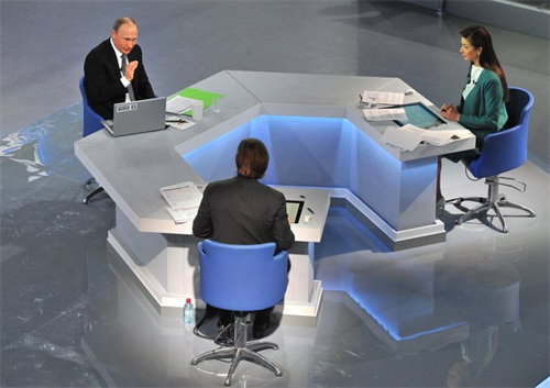 Tổng thống Nga Putin đã đến trường quay để tham gia cuộc đối thoại.