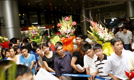 Đông đảo người thân, thầy cô và bạn bè của các thí sinh dự thi Olympic Hóa cùng lãnh đạo Sở ngành giáo dục đã có mặt từ rất sớm tại sảnh chờ sân bay.