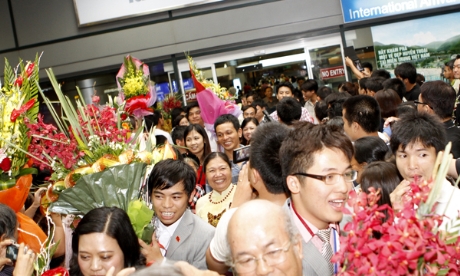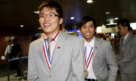 Đúng 22 giờ 30, Đoàn học sinh Việt Nam thi Olympic Hóa học 2012 đã đáp xuống sân bay Nội Bài (Hà Nội) trở về từ Mỹ, trong niềm vui chiến thắng.