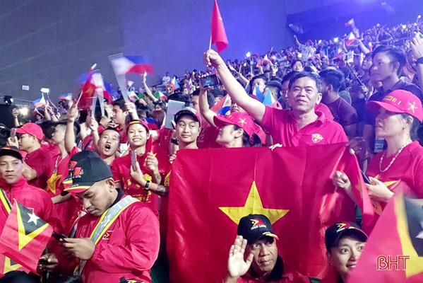 Rất đông cổ động viên Việt Nam, trong đó có những người Hà Tĩnh đang lao động tại Philippines cổ vũ cho đoàn VĐV Việt Nam