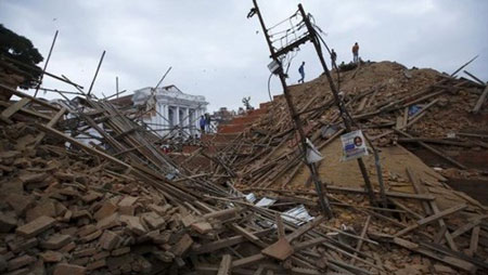 Đống đổ nát ở Nepal sau trận động đất hôm 25/4.