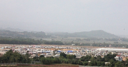 Bãi đỗ xe chùa Bái Đính nhìn từ trên cao xuống.