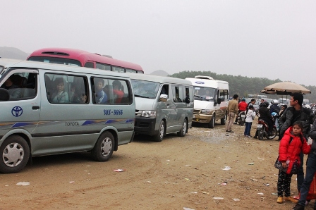 Từ bãi đỗ xe để đi lên chùa, nườm nượp kẻ xuống, người lên, tại một số điểm xảy ra tình trạng xen lấn, xô đẩy nhau và nhất là tình trạng người nhà lạc mất nhau khá nhiều. Đông nhất vẫn là đền thờ Thánh Mẫu, đền thờ Đức Ông, tượng Phật Di Lặc và nơi đặt các tượng Phật. Du khách xô đẩy chen lấn nhau để mong được xoa tiền, sờ tay vào tượng Phật…