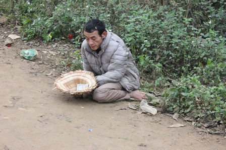 Những người hành khất ngồi rải rác ở đường lên chùa