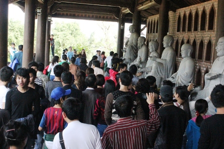 Ngày mùng 6 tháng Giêng (tức ngày 15/2), chùa Bái Đính (Ninh Bình) mới khai hội, nhưng từ hôm nay, mùng 5 tết, hàng vạn người đã nườm nượp đổ về ngôi chùa lớn nhất Việt Nam để cầu lộc cầu tài đầu năm mới.