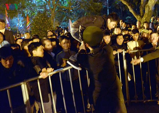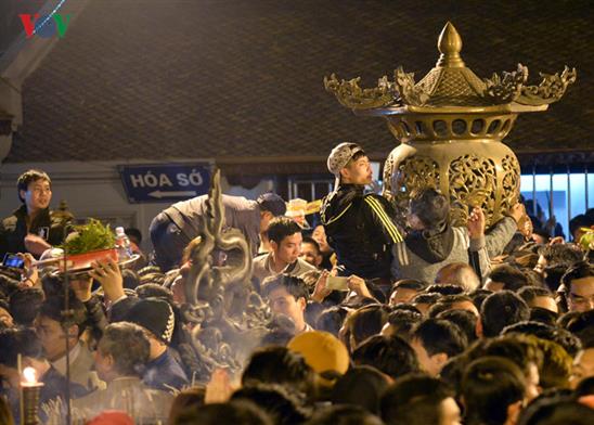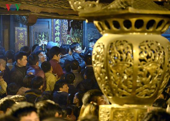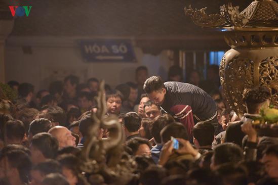 Sau khi những nghi lễ khai ấn truyền thống kết thúc, lực lượng an ninh chưa kịp mở hàng rào nhiều đối tượng đã tự ý trèo qua, lao vào đền cướp lộc.