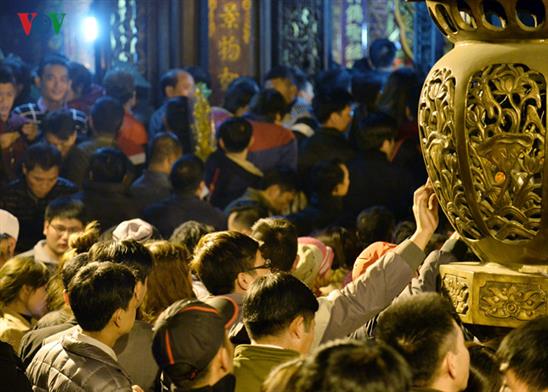 Phía bên trong đền cảnh chen chúc cũng đông không kém.