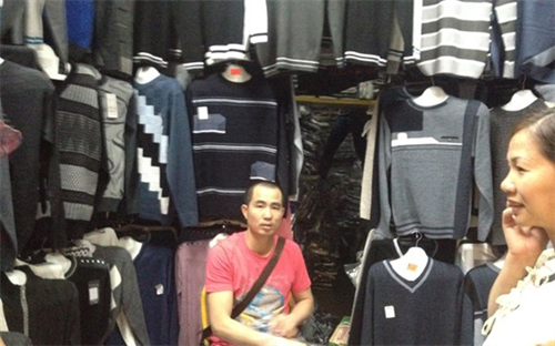 Một quầy hàng của người Việt bán áo len nhập từ Thổ Nhĩ Kỳ, trong khu chợ Liu ở Mátxcơva.