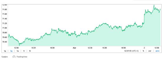 Ngày hôm nay 2/8/2017, tỷ giá đồng euro trên thị trường ngoại hối Moskva tăng đến gần 72 rúp/ EUR, đạt đến mức tỷ giá vào ngày 26 tháng chín năm ngoái. So với giá đóng cửa phiên hôm qua, tỷ giá đồng euro hôm nay đã tăng thêm 64 kopecks (+1, 04%).