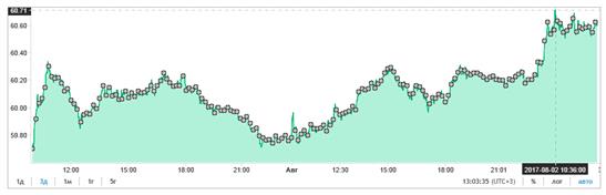 Tỷ giá đồng USD sáng nay 2/8/2017 đã có lúc đạt mức 60, 71 rúp/USD