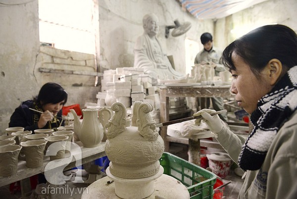 Cặp lộc bình 1,8 tỉ đồng trong Hội chợ Xuân khiến nhiều người trầm trồ bởi vẻ đẹp tinh tế. Trong ngày đầu năm mới, chúng tôi đã “đột nhập” xưởng chế tác gốm có một không hai này. Ở đây, ngoài cặp lộc bình khủng trên, người ta còn làm nhiều đồ vật rất hấp dẫn.