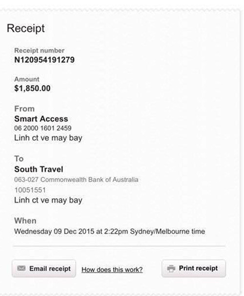 Thông tin chuyển khoản thanh toán tiền vé máy bay của nạn nhân cho Vi Tran